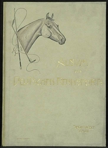 Album des Deutschen Rennsports. 1903. Ein hippologisches Prachtwerk. Herausgegeben von dem Verlage der 'Sport-Welt'. Berlin, Verlag der 'Sport-Welt', 1903. 2°. 41 cm. 34, XVI Seiten. Original-Halbleinenband mit goldgeprägtem Deckeltitel. Erste Ausgabe. Mit zahlreichen Abbildungen. Einband fleckig, Kanten leicht berieben. Gutes Exemplar.