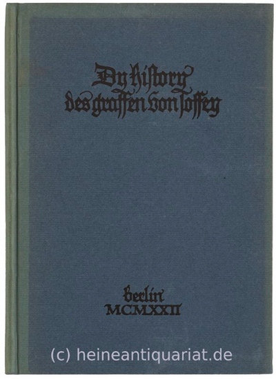 Dy History des graffen von soffey. [Vorzugsausgabe] Berlin, Officina Serpentis, 1922. 1 (weisses) Blatt; 9 Blätter. Auf dem Vorderdeckel mit dem Titel, dem Ort und dem Jahr bedruckter Original-Interims-Pappband. Mit einem