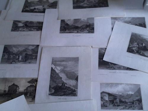 Konvolut aus 15 Stahlstichen um 1850 um, Kunstanstalt des bibliographischen Instituts, Hildburghausen, 1850. Gesamtgröße je ca. 29, 3 cm x 19,5 cm. Größe der Darstellung je ca. 15,4 cm x 10,5 cm--- - Enthalten: Rhone-Gletscher/Das Wetterhorn in der Schweiz/Thun on the Thun-Lake in Switzerland/Roveredo/Der Pilatus in der Schweiz/der Mont-Rosa von Vispach aus/lauterbrunnenthal in der Schweiz/Der Montblanc von Sallenche aus gesehen/Der Lauer- (oder Lowerz-)See in der Schweiz/Dier Jungfrau von Grindelwald aus gesehen/Interlacken in der Schweiz/Hof Wyl/Chateau Chillow am Genfer See/Chamouni in der Schweiz/Brieg in der Schweiz -.