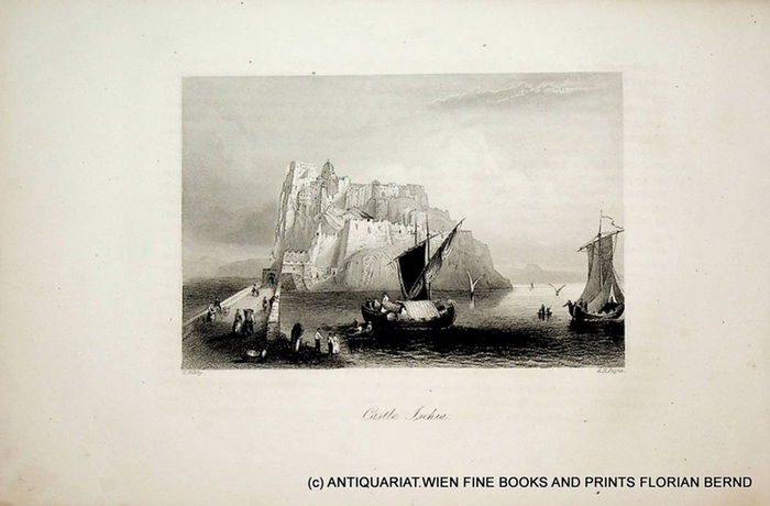 ISCHIA , Castello Aragonese, Ischia Ponte, veduta, Ansicht view, original antique print about 1840 c. 1840. original steel engraving by A. H. Payne after H. Bibby, image size approximately 10,5 x 15,5 cm. originale Druckgrafik von ca. 1840 /Antique Print form c. 1840.