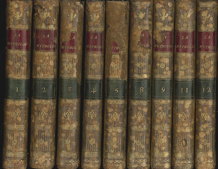 Mit kolorierten Aquatinta-Tafeln u.a. von Felix Mixelle reich illustriertes Werk zu römisch-griechischen, ägyptischen und persischen Mythologie. Der Verfasser Aubin-Louis Millin (1759-1818) war Naturhistoriker sowie Altertumswissenschaftler. Das vorliegende Werk war für Kinder und Jugendliche aufbereitet, wie das Titelblatt bemerkt: "Ouvrage élémentaire, indispensible aux jeunes gens de l'un et de l'autre sexe, et utile à toutes les classes de lecteurs." Es fehlen die Bände 6, 7 und 10.