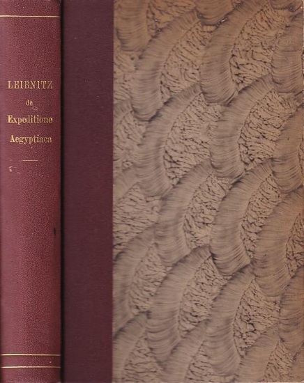 Leibnitii de expeditione Aegyptiaca Ludovico XV Franciae Regi proponenda Scripta quae Supersunt omnia adjecta praefatione historico-critica edidit Klopp. Hannover, Klindworth, 1864. Erste und wohl einzige Ausgabe. 23,0 : 14,7 cm. Neuerer weinroter Original-Halbleinenband mit goldgeprägtem Rückentitel. CII, 432 Seiten mit gestochenem Frontispiz. Seite für Seite genau überprüft. Sauber, eintragungsfrei, fest im Block. Seiten 415/6 im oberen Rand 1 cm Anriss. Richtig gutes Exemplar. Vitri8.