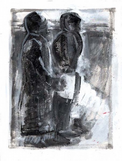 Zwei Personen. _. 1 Blatt., 829F. Sehr gutes Exemplar. Acryl und Gouache auf Papier. 27 x 21 cm, verso signiert und datiert August 1987.