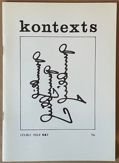 Kontexts. Double issue 6/7. A review of visual / experimental poetry and language art. Double issue 6/7. Contents: Charles Amirkhanian, Douwe Jan Bakker, Peter Barry, Ulises Carrion, Antonio Claudio Cavalho, Hans Clavin, Christopher Code, Robin Crozier, Michael Druks, Michael Gibbs, Anthony Gnazzo, Alice Hutchins, Servie Janssen, Richard Kostelanetz, John Liggins, Raul Marroquin, Maurizio Nannucci, bp Nichol, Wlademir Dias Pino, Betty Radin, J. C. van Schagen, Rod Summer, Charles Verey, Lawrence Weiner, Jonathan Williams, Stephen Williams. And a round up of news and reviews. Exeter: Kontexts Publications. 1975. Mit zahlr. schw.-w. Abb. Unpag. Quart. Einband minimal gebräunt, sehr gutes Exemplar.