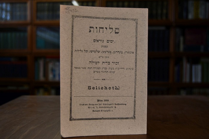 Selichoth (Jüdische Bußgedichte und Gebete). Wien, Jos. Schlesinger, 1898. 107 S. 20 x 13 cm, Broschur. Einband berieben und bestoßen. Schnitt fleckig. Durchgehend fleckig. Papierbedingt gebräunt. Eselsohrig. Sehr selten. Im KVK an keiner deutschsprachigen Bibliothek nachweisbar.
