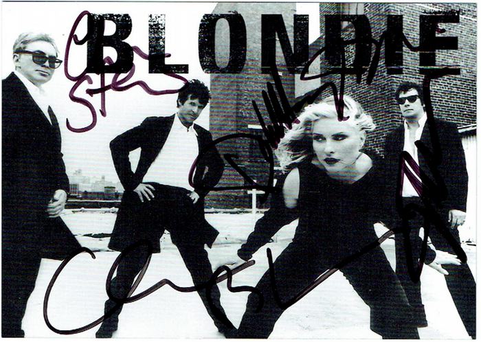 Portraitpostkarte mit eigenh. Unterschriften. o. O. u. D. 150 : 100 mm. Promotion-Postkarte für das Album ?No Exit? mit den Unterschriften von Debbie Harry, Chris Stein, Clem Burke und Jimmy Destri.