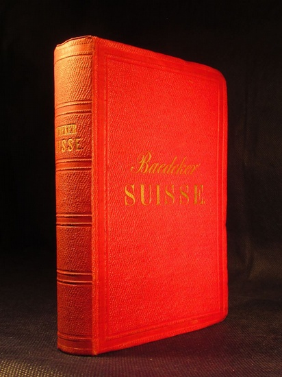 La Suisse et les parties limitrophes l'Italie, de la Savoie et du Tyrol. Manuel du Voyageur. Coblenz, Karl Baedeker, 1867. Septieme (7.) Édition corrigée. XL, 421 S. Roter Original-Ganzleinenband mit goldgeprägtem Rücken- und Deckeltitel sowie dreiseitigem Pfauenschnitt. Mit mehrfarbiger Illustration als Frontispiz. Avec 19 cartes, 7 plans de villes et 7 panoramas ainsi qu'avec registre en annexe. Stempel auf Vorsatz. Sonst sehr gutes, nahezu tadelloses Exemplar; Karten, Pläne und Panoramen vollständig enthalten. Cachet du propriétaire sur la page de garde. Sinon, très bon exemplaire, presque sans défaut; cartes, plans et panoramas complet inclus.