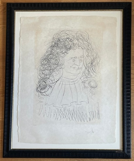 Portrait de La Fontaine. Radierung auf Japan. Blattgröße 76 x 56 cm. Nummeriert (62/250) und signiert. Gerahmt. (1974). innerhalb des Druckplattenrandes etwas gebräunt, sonst sehr gutes Exemplar. Versandmöglichkeiten bitte erfragen.