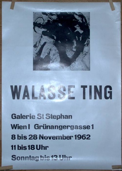 Walasse Ting. Galerie St. Stephan, Wien I, Grünangergasse 1. 8 bis 28 November 1962. 11 bis 18 Uhr. Sonntag bis 13 Uhr. Wien, 1962. OPlakat [ca. 59 x 42 cm]., Plakat. Leichte Randläsuren, gerollt.